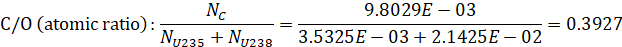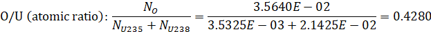 Atomic densities of U235, U238, C and O:
